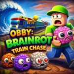 Obby: Brainrot Train Chase is a platform obstacle game inspired by the popular Roblox obby style. Your main goal is simple. You run beside a moving train and search nearby areas for strange meme creatures called brainrots. These collectibles appear across the map in different spots. You must grab them and return to the train before danger appears.